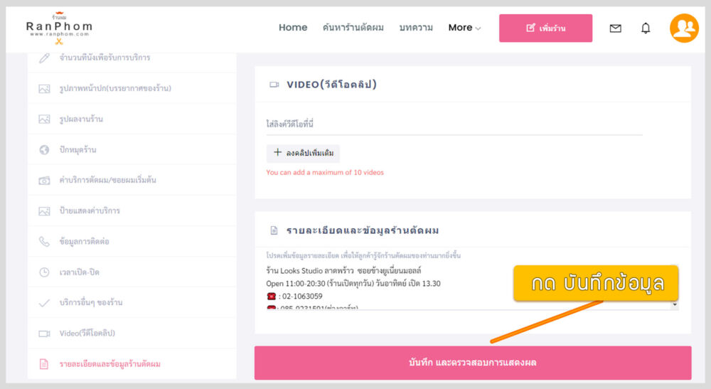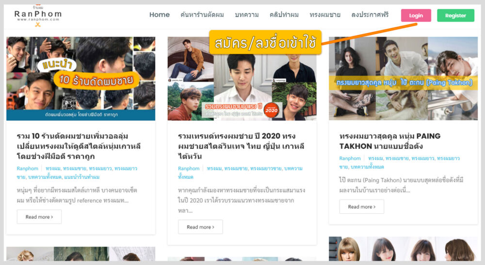 เพิ่มโอกาสให้ลูกค้าได้รู้จักร้านตัดผม ร้านทำผม และได้เยี่ยมชมรูปภาพผลงาน ของร้านคุณให้มากขึ้น โดยลงข้อมูลร้านในระบบค้นหาร้านตัดผมใน www.ranphom.com ทำให้ลูกค้าที่ค้นหาร้านตัดผมใกล้ตัวเจอร้านของคุณ ลงข้อมูลวันนี้ฟรี ไม่มีค่าใช้จ่ายใดๆ อีกทั้งสามารถลงได้เองง่ายในเวลาไม่เกิน 10 นาที (แนะนำลงผ่านคอมพิวเตอร์จะง่ายและไวมากๆ กว่าใช้มือถือ) โดยมีวิธีการลงข้อมูลดังต่อไปนี้