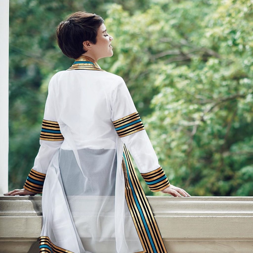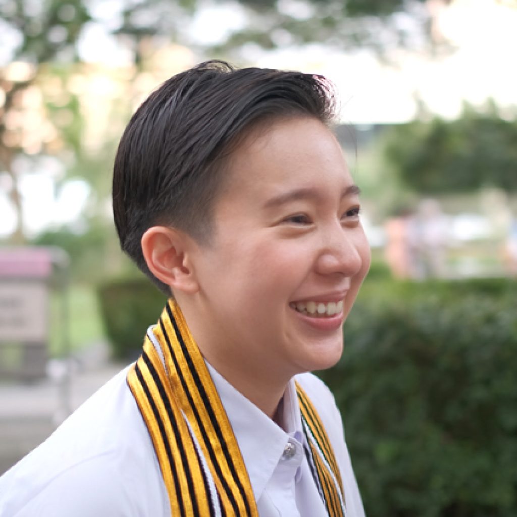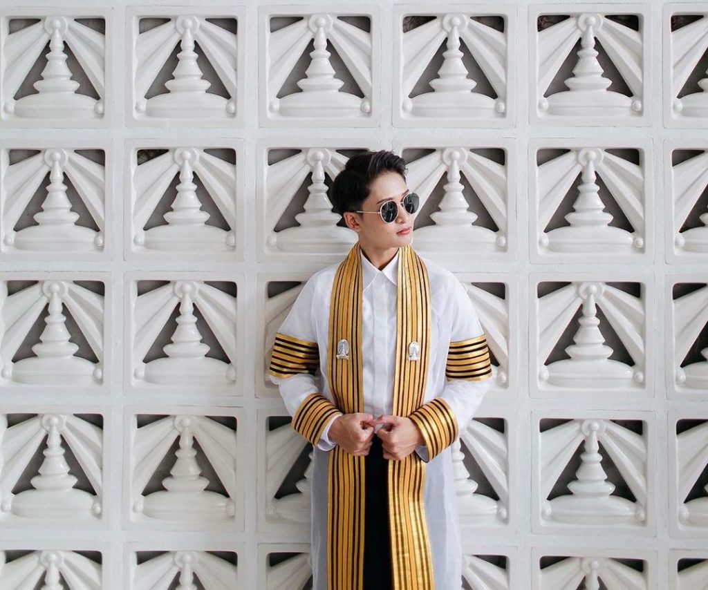 ลุคนี้เข้ากับโทนภาพที่ทำให้ดูสวยแพง ถ้าไม่สวมชุดครุยนี่คือถ่ายแบบนิตสารเลยก็ว่าได้ ผมสั้นดัดวอลุ่มหน่อย หรือจะใช้ความหยักศกโดยธรรมชาติก็เข้ากันได้ดีมากๆ